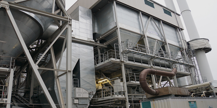 原煙氣經進風煙道導流由頂部旋轉向下進入反應塔,石灰漿液通過霧化盤拖曳剪切成微小顆粒,在顆粒表面的液膜中進行傳熱和傳質,脫除煙氣中的HCl、SO2等酸性物質經布袋除塵器過濾后排出。
