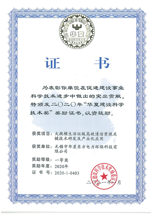中國城市環(huán)境衛(wèi)生協(xié)會科學技術獎