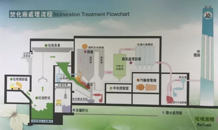 上圖為焚化廠處理流程
