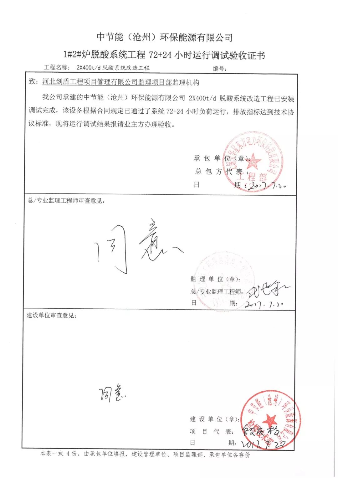 我公司中標承建的河北滄州生活垃圾焚燒發(fā)電項目2x400t/d煙氣凈化工程于2017年10月29通過72+24小時驗收,完成竣工報驗,2017年12月31日完成所有竣工手續(xù)交接,正式竣工驗收。該項目采用SDA吸收塔+石灰漿制備系統(tǒng)+飛灰輸送系統(tǒng)+SNCR系統(tǒng)等凈化工藝,現(xiàn)整個系統(tǒng)現(xiàn)運行穩(wěn)定,為我公司 EPC項目。