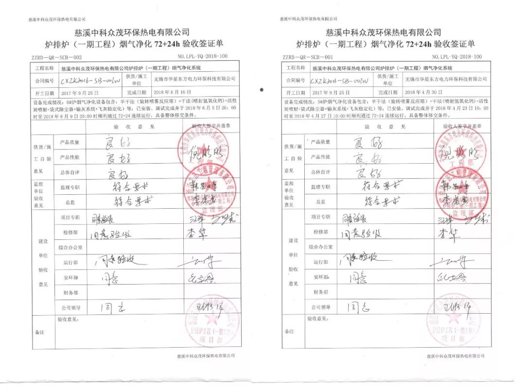 我司中標(biāo)承建的浙江慈溪生活垃圾焚燒廠3x750t/d爐排爐煙氣凈化工程,一期工程2x750t/d于2018年6月遞交竣工申請,通過近半年的試運(yùn)行,該工程于近日通過竣工驗收。