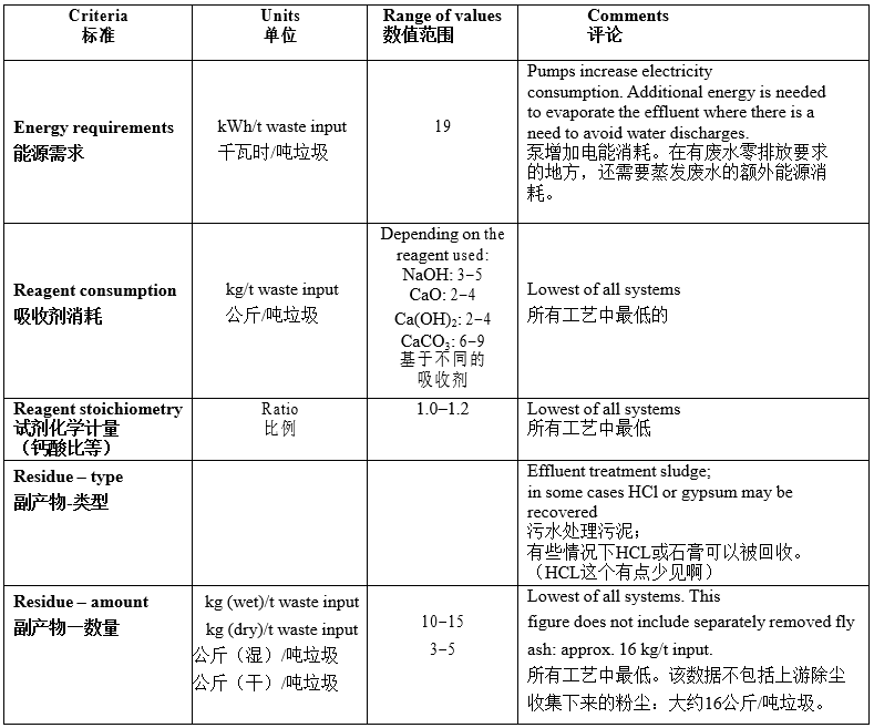 通過半干法+干法工藝實現(xiàn)比單獨使用半干法工藝,從而將石灰消耗量從10公斤/噸垃圾減少到7.5公斤/噸垃圾,這減少半干法系統(tǒng)的吸收劑消耗成本是0.33-0.38歐元/噸垃圾。