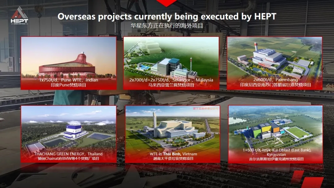 To date, HEPT has successfully implemented multiple benchmark grate, FGC system and supporting facility projects globally, covering locations including overseas, Issyk-Kul in Kyrgyzstan, Maha Sarakham, Sa Kaeo, Chainat, Chumphon, Ratchaburi and Rayong in Thailand, Spain, Norway and Indonesia projects with GEA, Palembang Indonesia, TK, IKSI, Thai Binh Vietnam, Selangor Malaysia, Hyderabad, Pune and Dundigal in India, Varaka in Turkey, West Nagasaki in Japan as well as domestic locations including Nanhai in Foshan Guangdong, Zhuozi in Inner Mongolia, Changning in Hunan and Guangyuan in Sichuan. HEPT has cumulatively participated in over 300 global solid waste incineration plants, with more than 500 sets of FGC systems already in operation or completed, spanning 31 regions domestically and internationally.