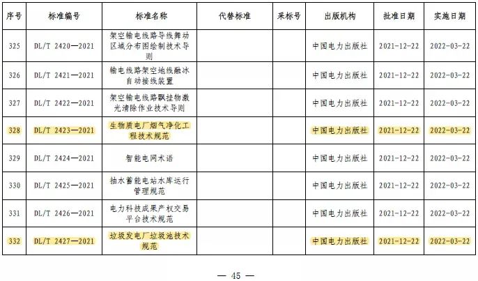 近日,由中國電力企業(yè)聯(lián)合會垃圾發(fā)電標準化委員會(以下簡稱“中電聯(lián)垃圾發(fā)電標委會”)組織國內(nèi)環(huán)保企業(yè)編制的《生物質(zhì)電廠煙氣凈化工程技術(shù)規(guī)范》(DL/T 2423—2021)、《垃圾發(fā)電廠垃圾池技術(shù)規(guī)范》(DL/T2427—2021)、《危險廢物焚燒煙氣凈化系統(tǒng)技術(shù)規(guī)范》(DL/T 2428—2021)、《焚燒爐及余熱鍋爐性能試驗規(guī)程》(DL/T 2429—2021)、《垃圾焚燒發(fā)電廠安全生產(chǎn)評價導則》(DL/T2430—2021)五項具有垃圾發(fā)電特性的電力行業(yè)標準,已由國家能源局批準,于2022年3月22日起正式實施。其中《生物質(zhì)電廠煙氣凈化工程技術(shù)規(guī)范》(DL/T 2423—2021)、《危險廢物焚燒煙氣凈化系統(tǒng)技術(shù)規(guī)范》(DL/T 2428—2021)兩項技術(shù)規(guī)范分別由我司主編和參編,是繼我司主編的《垃圾發(fā)電廠煙氣凈化系統(tǒng)技術(shù)規(guī)范》DL/T 1967-2019發(fā)布以來,又2項與煙氣凈化有關(guān)的重要行業(yè)規(guī)范獲批發(fā)布。