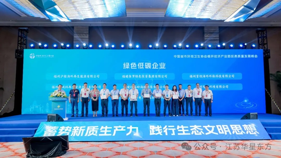 Good news! The China Urban Environmental Sanitation Association Circular Economy Industrial Park High-Quality Development Summit was successfully held, and Huaxing East Co. won the "Green and Low-Carbon Enterprise" certificate